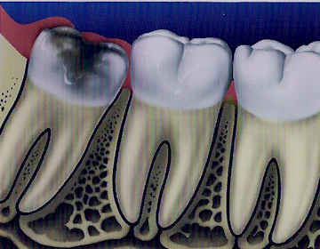 When the tooth has only partially broken through the surface, bacteria can enter through the opening or flap around the tooth and cause the gum to become infected. This uncomfortable condition is best avoided by having the wisdom teeth removed before infection can develop. - Decay